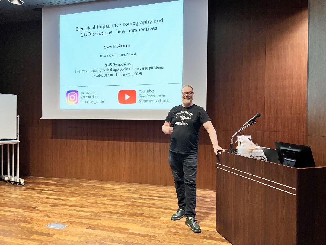 I delivered a talk entitled Electrical impedance tomography and complex geometric optics solutions: new perspectives at the RIMS Symposium Theoretical and numerical approaches for inverse problems in Kyoto, Japan, on January 21, 2025. RIMS is the Research Institute for Mathematical Sciences on the Kyoto University campus. There is a recurrent inverse problems workshop taking place
