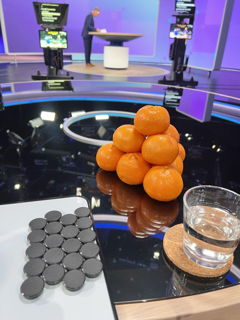 Näytin lähetyksessä kaksi- ja kolmiulotteiset optimaaliset pakkaukset käyttäen magneetteja ja mandariineja (kuva). Alla myös pidempi selostus pallonpakkauksen historiasta ja uusista tuloksista tältä vuodelta.