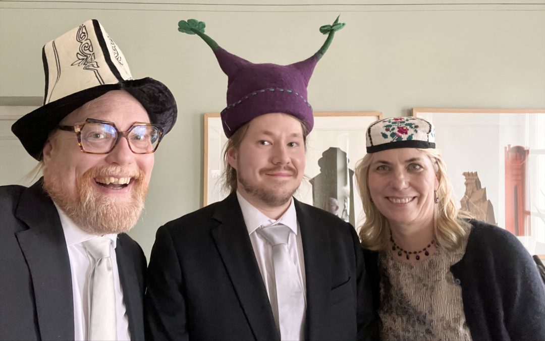 After the successful defense there was a traditional karonkka party. My role as the President of the Finnish Inverse Problems Society was pleasant: I had the honor to give Antti his inversion doctoral hat. The hat was carefully chosen by Antti’s supervisor Johanna Tamminen.