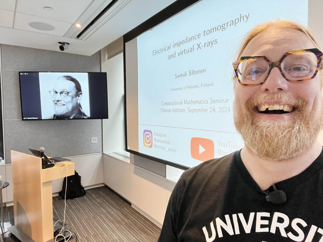 During my September visit I delivered a scientific talk at the Computational Mathematics Seminar at the Flatiron Institute. My topic was Electrical impedance tomography and virtual X-rays, and you can download my slides here: PDF 53MB.