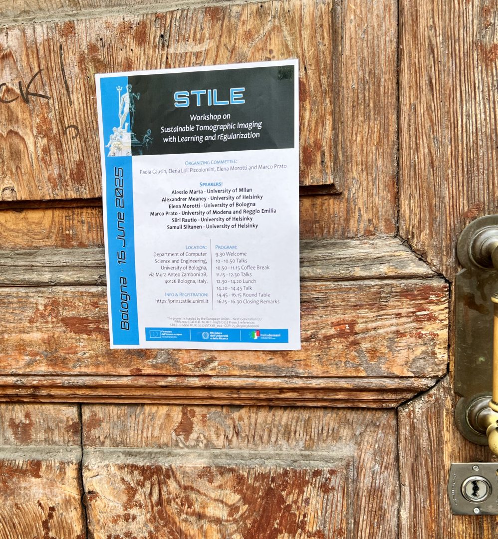 I spent Monday June 16 in Bologna, Italy, together with my research team. Our colleagues at University of Bologna organized a great one-day scientific workshop on tomographic imaging, including industrial applications. You can see the program here: Workshop on Sustainable Tomographic Imaging with Learning and Regularization.